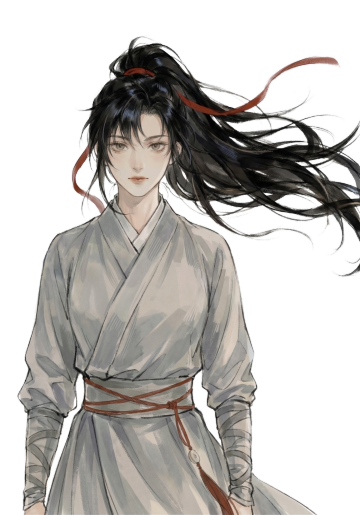 古典中式插画风,水墨山水背景,人物手持折扇,尽显雅致韵味。
