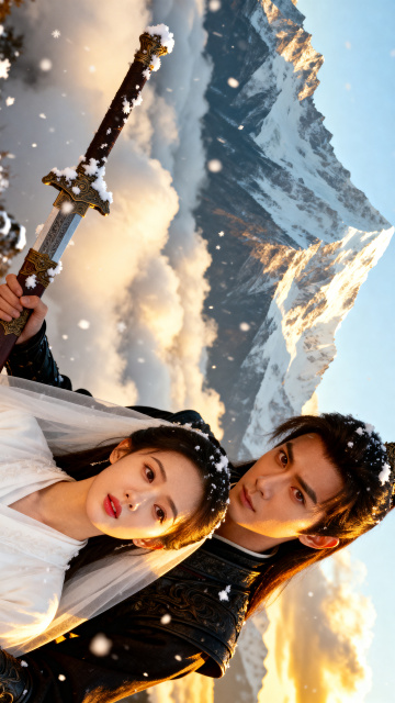 古典中式风格,石刻风铭文盾牌与金属质感战甲交织,实景光影塑造严峻氛围,人物眼神深邃,尽显故事感与历史厚重。