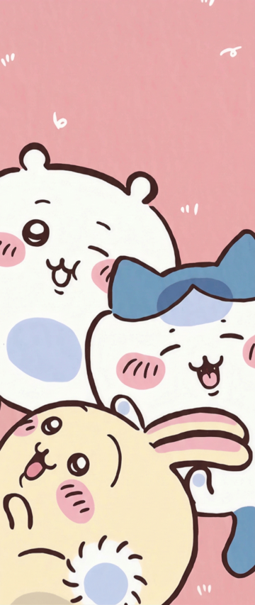 一组四个不同元素的卡通插画集合,每个元素都采用圆润可爱的Q版风格,白色描边勾勒轮廓,内部填充均匀的马卡龙色系。第一个是戴着粉色围巾的白色兔子抱着橙色胡萝卜,第二个是戴着蓝色领结的黄色小鸡捧着金色麦穗,第三个是戴着绿色叶子头饰的棕色小熊举着红色草莓,第四个是戴着红色蝴蝶结的灰色小猫抱着紫色葡萄。所有元素都位于纯色背景上,整体色彩明快柔和,四个插画呈田字格规整排布,保持一致的构图比例和萌系氛围。