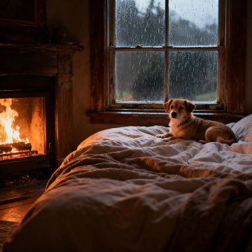 温暖春日,小犬静卧窗台,阳光洒落,光影柔和。插画风厚涂技法,重拟物细节,油画质感,营造温馨舒适氛围。