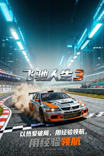 赛博朋克风与3D虚拟现实融合,霓虹灯辉映未来赛道,玻璃质感奖杯闪耀中央,赛车疾驰环绕,粒子特效迸发酷炫光影,卡通狐狸灵动飞跃,尽显科技感与热血冲击。