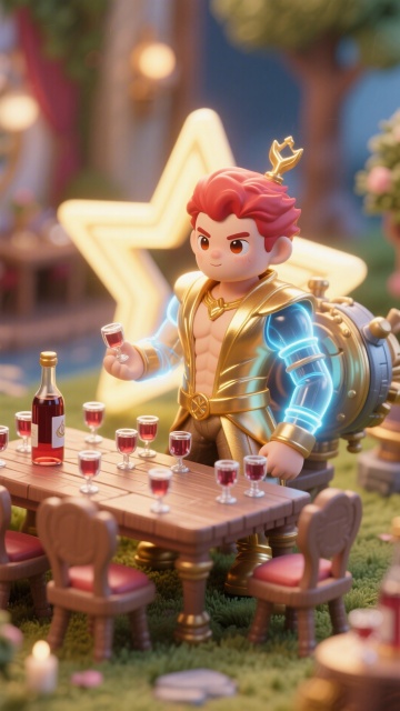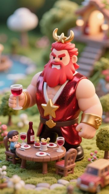 梦幻感十足的软3D卡通场景,毛发生长风与粘土质感结合,七个小矮人欢快奔跑,背景粉色童话乐园,充满可爱与节日氛围。