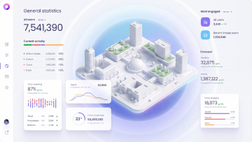未来感科技界面,3D玻璃风设计,悬浮透明面板环绕中央主屏,粒子光效流动,虚拟现实交互体验,清透蓝调视觉。