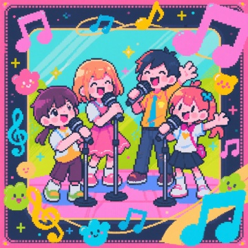 像素风漫画少女在樱花树下野餐,清新可爱,尽享春日美好时光。
