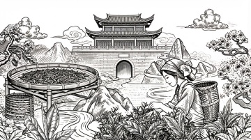 古典中式工笔风,细腻描绘茶叶制作流程,水墨淡雅,尽显传统韵味。