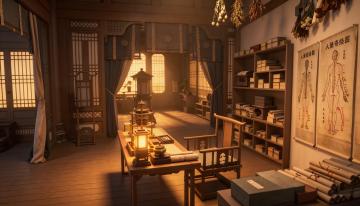 中式古典殿堂中,鎏金镜框映照月光与粒子光晕,红纱缭绕,光影交错,3D虚拟现实风格营造神秘梦幻氛围,尽显奢华与朦胧之美。