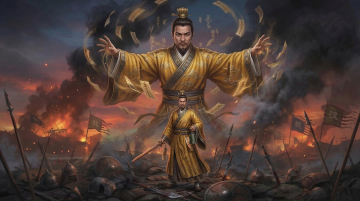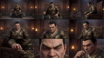国潮风与重拟物风融合,中式古典庭院中,人物身着红黑相间的华服,手持写有“千里别君”的折扇,茶香氤氲,静谧优雅,3D质感细腻,鎏金纹饰熠熠生辉,尽显文艺与古典之美。