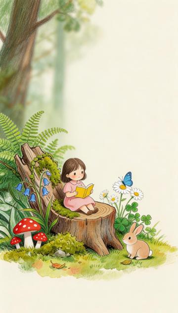 水彩风插画,质朴可爱女孩,卡通感十足,温暖色调传递童真与宁静。