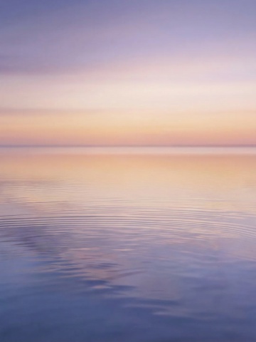 一片宁静的海面沐浴在壮丽的日落余晖中,天空中漂浮着被染成粉紫色和橙色的云彩,阳光从云层间穿透洒下,在海面上形成金色的波光粼粼的倒影,水面呈现出由深蓝向浅蓝渐变的色彩,远处的天际线将天空与海洋温柔分隔,整体画面呈现出超写实的摄影风格,光影柔和细腻,色调温暖而富有层次感,营造出宁静、祥和而又壮丽的氛围,海面上点缀着几艘远处的白色帆船,天边的云彩形态更加丰富多变,增添了画面的动感与细节。