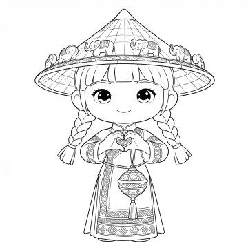 软3D风格的卡通女孩,融合民族元素与可爱设计,色彩斑斓的服饰展现节日氛围,面料质感细腻,充满童趣与文化韵味。