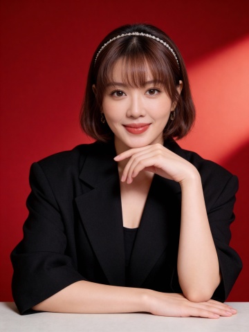 极简单色设计,黑色高领无袖针织展现面料质感,搭配珍珠耳饰,营造优雅、商务与时尚融合的性冷淡风视觉。