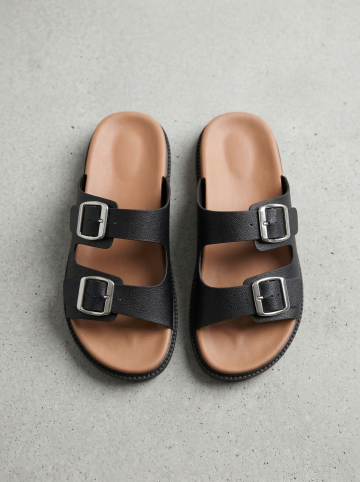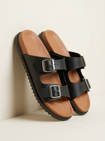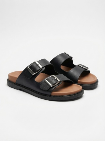 双色设计风凉鞋,黑绿撞色搭配,轻拟物造型与塑料质感结合,现代感十足,清爽舒适,尽显潮流时尚。