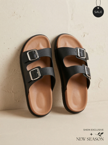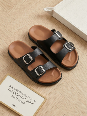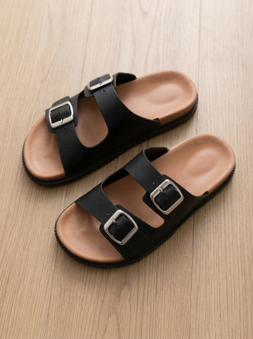 简约现代凉鞋,池畔实景展现清爽时尚感。