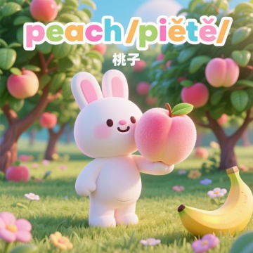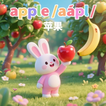 3D卡通风格,拟人化可爱兔子手捧胡萝卜,置身花海,清新自然,充满童趣。