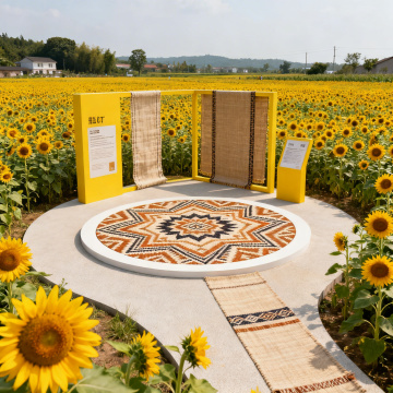 3D风与重拟物结合,阳光下的向日葵花海光影斑驳,蜜蜂飞舞,呈现自然清新与唯美的视觉盛宴。