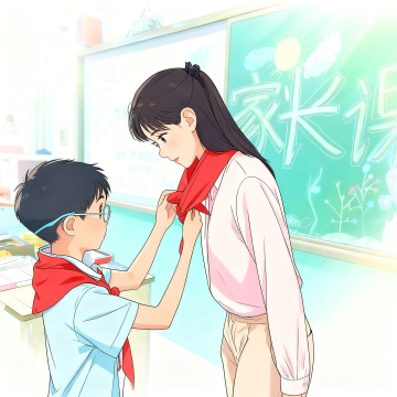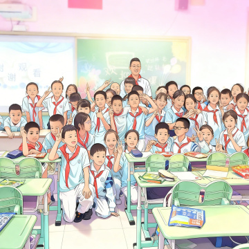 水彩风插画,清新柔和的教室场景,老师温柔指导学生,营造舒适温馨的学习氛围。