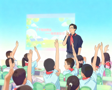 清新插画风,卡通感十足,师生共聚绿茵,白鸽飞翔,尽显童真与自然和谐之美。