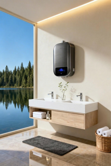 清新自然的浴室场景,融合木雕风与玻璃风材质,简约主义设计中透出柔和质朴感,性冷淡风色调营造舒适氛围,轻拟物风格提升实景感。