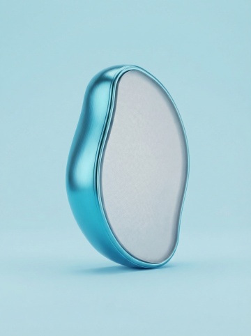 白色背景上,两个具有强烈毛玻璃质感的几何造型,主造型为不规则的六边形,边缘圆润柔和,内部呈现从中心向外扩散的渐变色彩,中心为深紫色,向外过渡到浅粉色和淡蓝色,高光区域明亮通透;旁边较小的造型为水滴状,整体为半透明的淡绿色,带有细腻的磨砂纹理,两个造型相互交叠,形成微妙的光影层次,光线从左上方照射,在物体边缘产生柔和的阴影,整体风格现代简约,色彩清新明快,具有光滑的表面和朦胧的半透明效果。