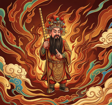 国潮风插画,拟人化财神骑金马持元宝,红金配色喜庆热烈,剪纸云纹与鎏金细节交织,卡通感十足,传递新春吉祥祝福。