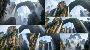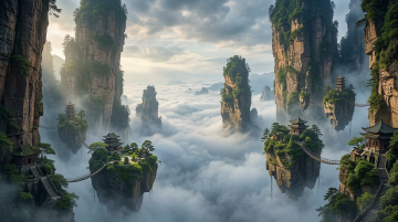 中式古典仙境,云海缭绕间,鎏金宫殿巍然耸立,仙鹤翱翔于霞光之中,融合水墨意境与3D虚实光影,营造梦幻神圣的静谧氛围。