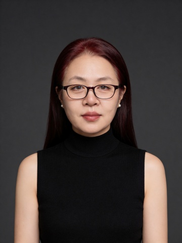 参考第一张图保留人物脸型、年龄等特征生成职场形象照,参考第二张图人物占位和比例,标准焦段50mm,F/4光圈(F/2.8-F/4区间),平视视角(镜头与人物视线齐平);人物占画面70%,人物居中(居中构图),位于画面中心,为视觉聚焦点,入境范围头部及以下至臀部下方10cm(半身像);左右留少量背景空间;头部与画面顶部保留5%空间;头部发型完整;肤质白皙细腻,头肩比例协调,美颜磨皮韩式精致自然的浓妆