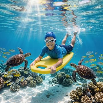 水下童真,清新梦幻,可爱笑脸,实景水彩风。