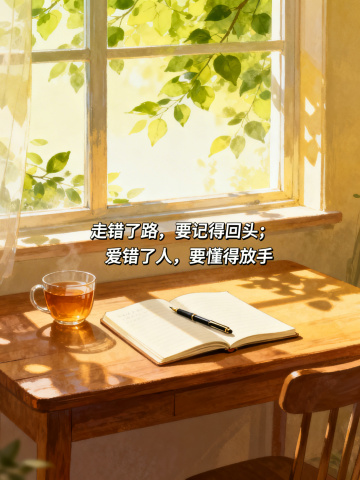 水彩风插画,窗边书桌沐浴暖阳,光影斑驳,茶香氤氲,手账风文字诉说温柔哲思,文艺感与清新感交织,传递春日静谧温馨。