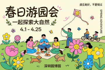 清新插画风,卡通拟人设计,展现春日出游季的欢乐氛围。
