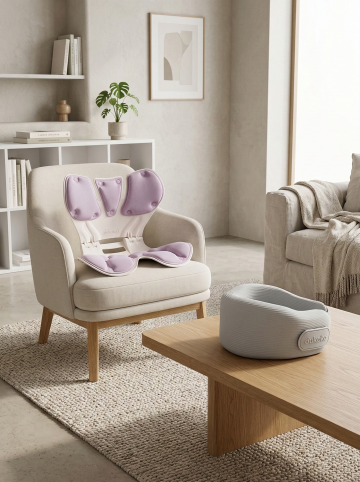 柔和光影下,轻拟物风与面料质感结合,营造舒适实景感,展现产品温润如家的关怀。