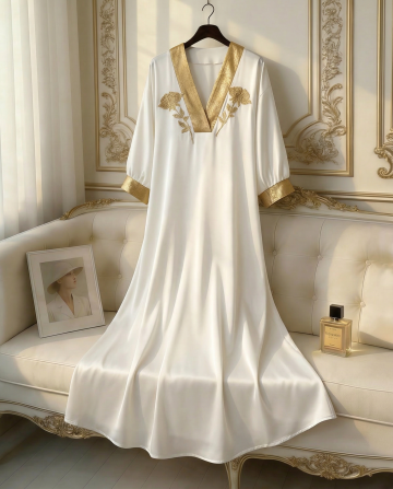 工笔风与刺绣风交织,古典中式庭院中,女子执伞轻步,紫白汉服飘逸如诗,樱花纷飞间尽显唯美浪漫与优雅文艺之韵。