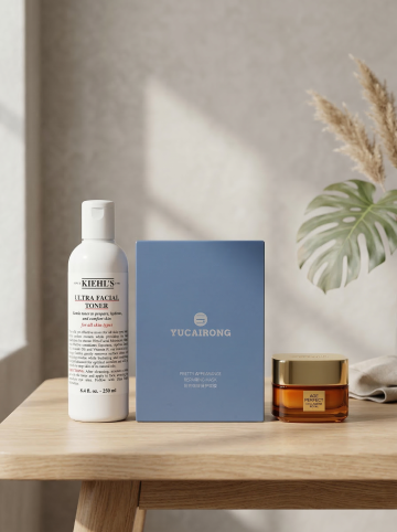 清新绿意背景搭配雏菊,柔和光影下展现产品纯净质感,轻拟物风与简约主义融合,传递自然优雅的护肤仪式感。