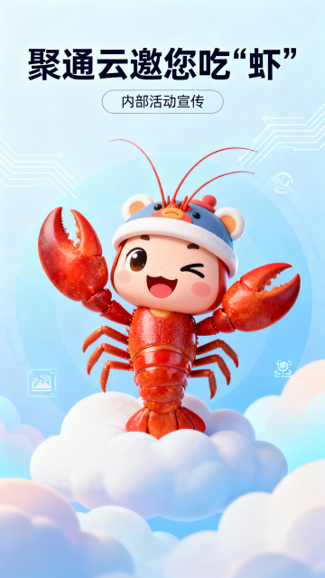 卡通感十足的软3D风格龙虾拟人形象,红黑双色设计,喜庆热烈,体积感强,节日氛围浓厚。