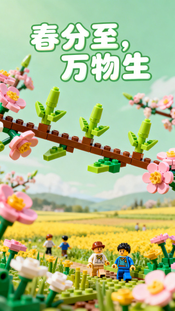 软3D风微缩艺术,卡通感十足的乐高花树场景,搭配可爱小人偶,营造温馨梦幻的居家氛围,塑料质感细腻,节日气息满满。