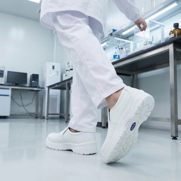 一个干净规整的现代化实验室场景,采用写实风格,以蓝白色调为主,光线明亮柔和,具有清晰的光影层次和细腻的质感表现。画面中可见身着白色防护服的研究人员在先进的白色和蓝色精密仪器设备旁工作,背景是带有规则几何图案的白色墙面。构图采用三分法,空间感强,整体氛围专业、严谨、科技感十足,适合作为背景使用。