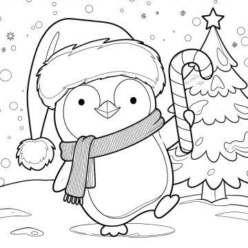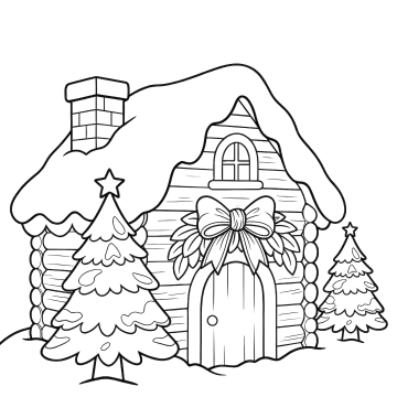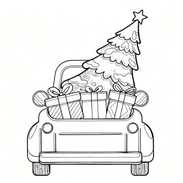 黑白线条勾勒的圣诞树,缠绕着螺旋丝带,顶星闪耀,夜空飘雪,静谧梦幻,插画风与版画质感交织,传递温馨节日氛围。