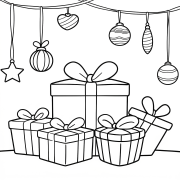 插画风圣诞树由礼盒堆叠而成,融合轻拟物与水彩质感,金色星光与飘落彩带营造梦幻喜庆氛围,传递温馨节日情调。