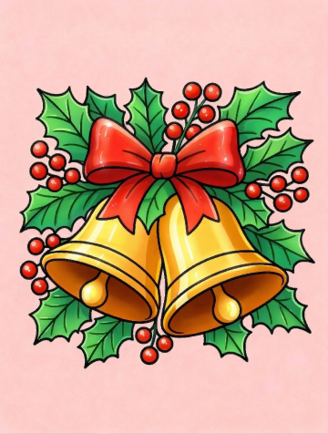 黑白线条勾勒的圣诞树,缠绕着螺旋丝带,顶星闪耀,夜空飘雪,静谧梦幻,插画风与版画质感交织,传递温馨节日氛围。