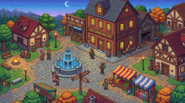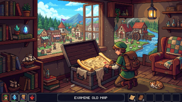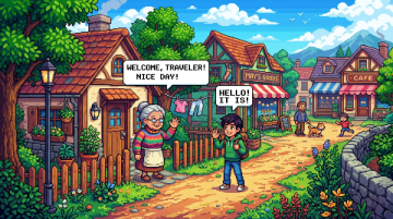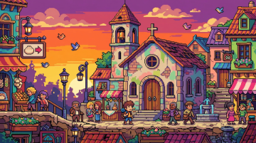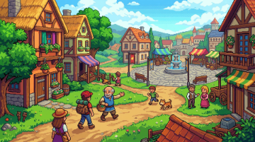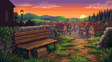 插画风的虚拟自然景观,清新舒适,小屋与绿树相映,营造出宁静的田园氛围。