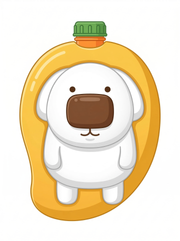 可爱卡通小狗拟人化设计,扁平风搭配塑料质感瓶身,萌趣十足,适合节日礼品包装创意。