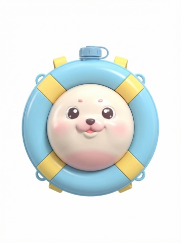 可爱感十足的软3D卡通水壶,萌趣小动物脸搭配蓝黄救生圈造型,塑料质感细腻,童趣满满,适合夏日清凉主题。