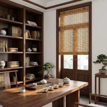 现代感与性冷淡风交融,简约主义空间中金属百叶窗勾勒光影韵律,木质地板与灰调家具营造舒适氛围,极简设计演绎静谧生活美学。