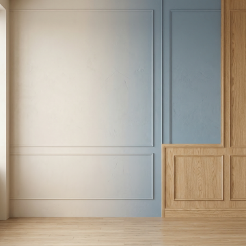 现代感与质朴感交融,双色设计风搭配浮雕线条,轻拟物风格墙面展现实景质感,温暖木质与柔和色调营造舒适空间氛围。