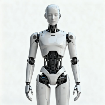 未来感科技风3D机器人,金属质感与精密机械结构结合,展现人工智能美学,冷色调光影强化科幻氛围。