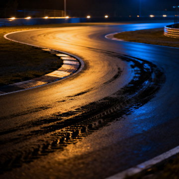 一辆白色为主、搭配蓝绿色条纹和红色细节的赛车,车身流线型设计,车头灯明亮,车身上有数字“6”和“RACING”字样,在不同的赛车场景背景中高速行驶,背景呈现出强烈的动感光效,有黄色、橙色的光线拖尾,营造出夜晚赛车的速度感和激情氛围,整体画面色彩对比鲜明,光影效果强烈,具有高度的视觉冲击力和真实的3D质感。