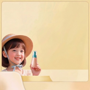 一只手握着一瓶防晒霜喷雾,喷雾正从瓶口喷出,形成白色的雾状。整体画面采用温暖的橙色和黄色作为主色调,背景是明亮的橙黄色天空,点缀着少量白色云朵。防晒霜瓶身主体为柔和的暖橙色,瓶身上有白色的“SPF 50”字样和相关标识,喷雾的白色与瓶身及背景的暖色调形成鲜明对比,营造出温暖、活力的夏日氛围。光线明亮柔和,从斜上方照射,在手和瓶身上形成淡淡的阴影,增强立体感。