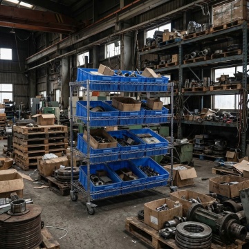 写实风格的现代仓库内部,高亮度自然光与人工照明结合,光线均匀照亮整个空间,白色天花板搭配红色横梁,蓝色金属货架带有橙色层板和黄色警示底座,货架上整齐堆放着大量棕色纸箱,不同样式的仓库布局,可能包含不同高度的货架排列、部分区域的托盘堆叠方式变化或不同尺寸的储物单元,整体保持工业风的简洁与秩序感,色彩以蓝、橙、棕、白为主色调,地面为灰色水泥质感,空间通透,结构清晰,营造出高效、整洁的仓储氛围。