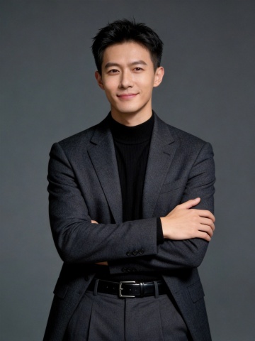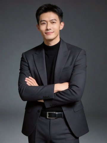 黑色西装双手抱胸男士形象照