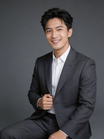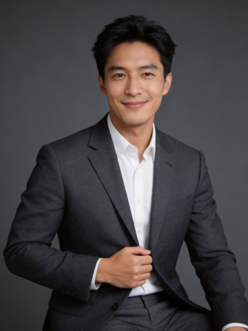 清爽灰色休闲西装男性双手插兜职业形象照
