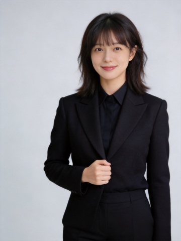 商务感十足的性冷淡风肖像,简约主义构图,面料质感细腻,实景拍摄呈现专业气质。